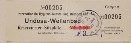 Karte für reservierten Sitzplatz im Undosa-Wellenbad mit Kontrollabschnitt