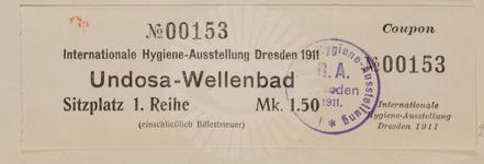 Karte für Sitzplatz 1. Reihe im Undosa-Wellenbad mit Kontrollabschnitt