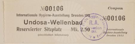Karte für reservierten Sitzplatz im Undosa-Wellenbad mit Kontrollabschnitt