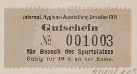 "Sportplatz der Internationale Hygiene-Ausstellung Dresden 1911. No. 037003" "Internationale Hygiene-Ausstellung Dresden 1911."