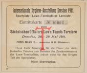Eintrittskarte zum Sächsischen Offiziers-Lawn-Tennis-Turnier