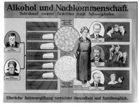 Sonderschau der Landeshauptstelle gegen den Alkoholismus, Dresden. Tafel "Alkohol und Nachkommenschaft. Schicksal zweier Familien nach Schweighofer."