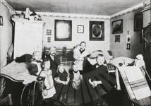 "Das Wohnungselend der Großstadt: Eine Berliner Kellerwohnung im Jahre 1917. (Der lungenkranke Mann haust mit Frau und sechs Kindern unter 14 Jahren in Stube und Küche. Der Kranke hat ein Bett für si
